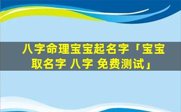 宝 🐘 宝取名字 🐞  八字 🐺  免费测试
