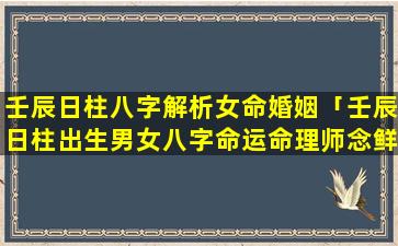 3、壬辰日柱八字 🦈 解析 🌻 女命婚姻如何