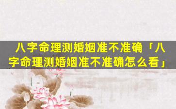 八字命理测婚姻 🌸 的准 🐦 确 🐯 性