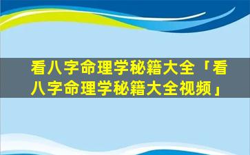 2、看八字命 🐼 理学秘籍大全视频