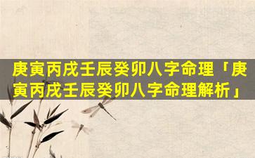 1、庚 🐒 寅丙戌壬辰癸卯八字命 🐶 理