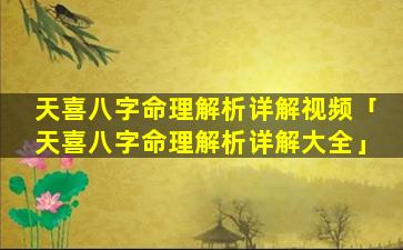 天喜 🌲 八字命理 🐵 解析详解视 🐈 频
