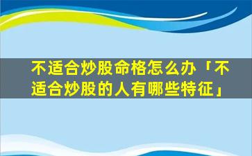 1、不适 🐼 合炒股命 🪴 格怎么办