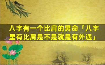 4、八字一个比肩的男命 🐱 好 💐 不好