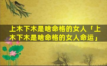 2、上木下木是啥命格的女 🐝 人命 🐦 运