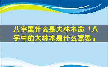 大林木命运八 🦊 字中“大林木 ☘ ”是 🐒 “指”日“柱天干为甲或己”,地“支”为“寅或”,戌且身旺的人。