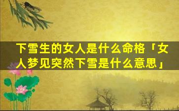 1、下 🐼 雪生的女 🐈 人是什么命格