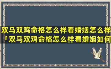 1、双马双鸡命 💮 格 🌵 怎么样看婚姻怎么样