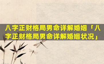 需要注意以上只是对正财格男命婚姻状况的一般性分析,具体情况还需 🐈 根据 🕊 个人的八字命局综合判断。