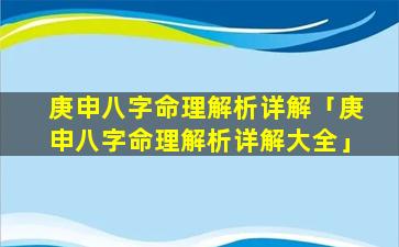 2、庚申八 🐠 字命理解 🕸 析详解大全