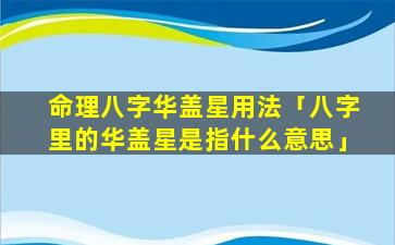 2、八字里的华盖星是 🐼 指什么意思 💐