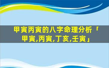 八字命理分析:甲寅丙 🐞 寅 🌸