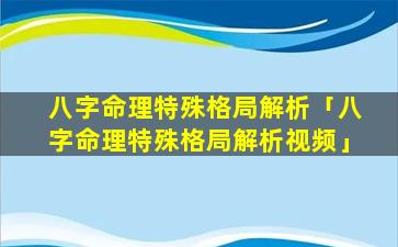 视频链接: [八字命理特 🌳 殊格 🐒 局解析视频]()