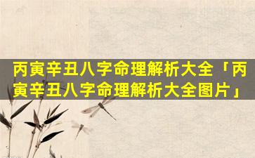 八字命理解 🐱 析大全 🦋 图片“丙寅辛 🐎 丑”