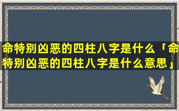 2、命特别 🐝 凶恶的四柱八字是什么意思 🦍