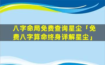 星尘八字算命终身详解是一款免费的在线八字算命工具,可,以提供全面的八字分析包 🐞 括: