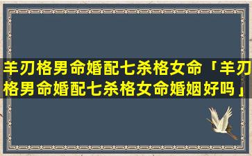 2、羊刃 🐴 格男命婚配七杀格女命婚姻好吗