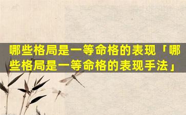 3、哪 🌵 些格局是一等命 🍀 格的表现呢