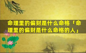 偏财命格:偏财在八 🐴 字命理 🐝 中指意外之财、流动之财 🦁 ,与正财相对。