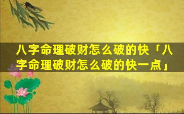 2、八 🐞 字命理破财怎么破的快一 🌾 点