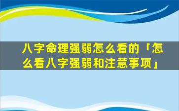 3、八字命理强 🌴 弱怎么 🦋 看的出来