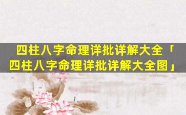 四柱 🦍 八字命理详批 🐯 详解大全 🦋 图