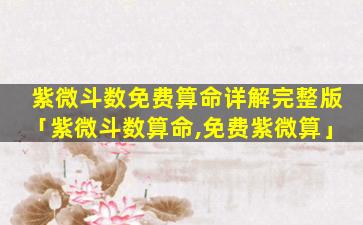 1、紫微 💮 斗数免费算 🐯 命详解完整版