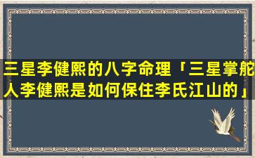 1、三星李 🐎 健熙的 🐶 八字命理