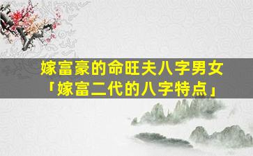 1、嫁富豪 🐘 的 🐺 命旺夫八字男女