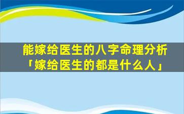 2、嫁给 🦁 医生的都 🐶 是什么人