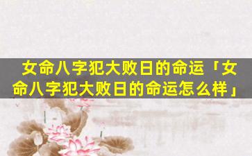 根据传统命理的说法,女命,八,字犯大 💮 败日其命运可能 💐 会受到一定的影响具体 💐 如下: