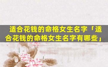 3、适合花 🦍 钱的命格女生名字大 🐧 全
