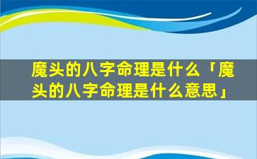 魔头的八字命理通常是指根据一个人的出生日期和时间推算出的命理格局。在命理学中魔头通常,被认为是身强、煞,气。重,且日主坐绝或空亡之人具体而言 🦟 其八字命理特征如下: