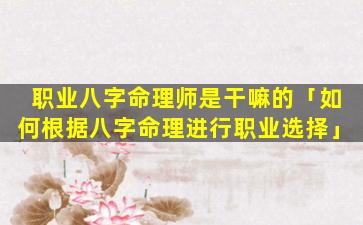 1、职业八字命理师是 🐅 干嘛的 🐬