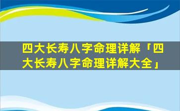 2、四大长 🐎 寿八字命理详解 🌵 大全