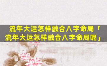 需要注意的是,融合流年大运和八字命局需要一定的专业知识和经验。建 🐒 。议请教专业人士进行准确的分析和预测