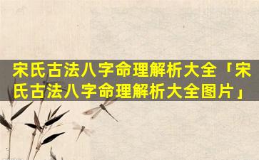 [图片: 宋氏古法八字命 🦅 理解析 🐅 大全.jpg]