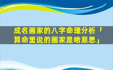 需要 💐 注意的是,算,命中出现画家只是一个参考具体含义需要结合命主的八字、大运等综合考量。
