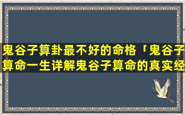 3、鬼谷子算卦最不好的命格是什么 🌺