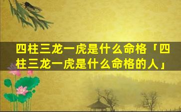 3、四柱 🦅 三龙 🐟 一虎是什么命格的