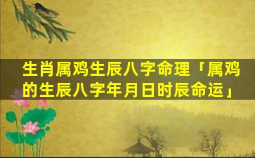 生肖属鸡生辰 🌴 八字 🐵 命理解析