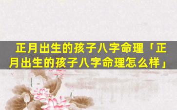 2、正月出生的孩 🐶 子八字命理怎么 🪴 样