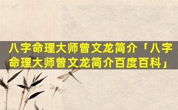 3、八字命 🦊 理大师曾文 🐋 龙简介图片