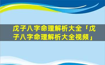 戊子 🐋 八字命理解 🐼 析 🌳 大全视频