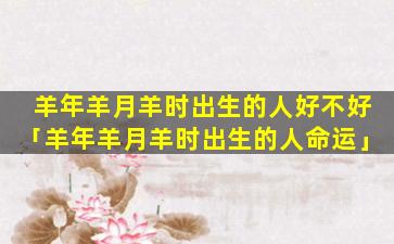 1、羊年 🌵 羊月羊时出生 🌺 的人好不好