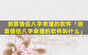 2、测算情侣八字命理的软 🕊 件叫什么