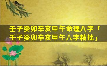 壬子癸 🌴 卯辛亥甲午 八 💮 字精批