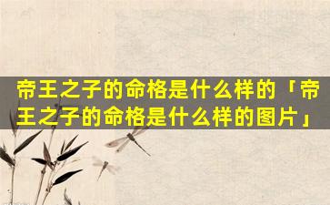 1、帝 🐠 王之子的命格是 🐞 什么样的