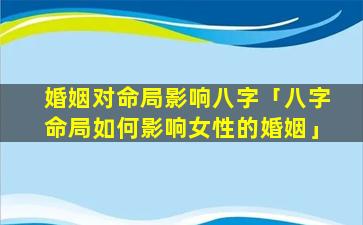 婚姻 🦄 对 🐅 命局八字 🌵 的影响
