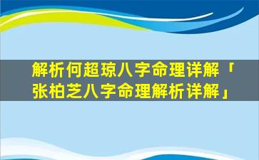 3、何 🌾 超琼的八字命 🌻 理解析